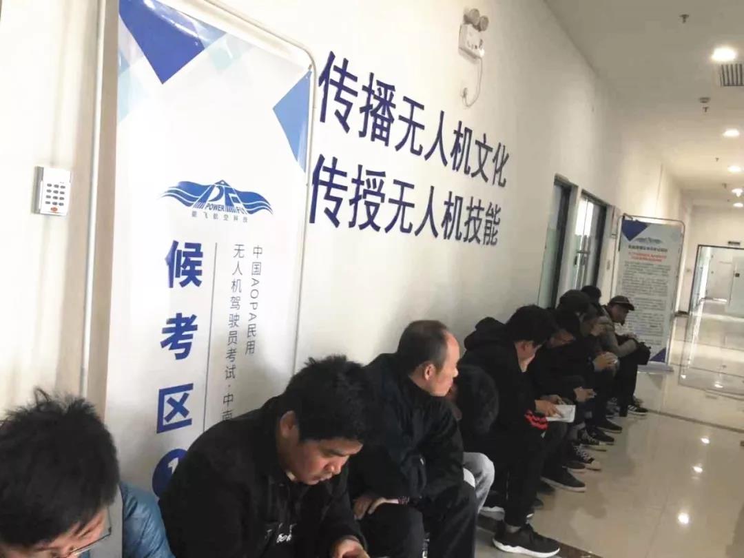候考(kao)區的(de)考(kao)生仔細觀察飛行(xing)中(zhong)的(de)無人機這也是(shi)鞏固備考(kao)知識(shi)的(de)記憶(yi)